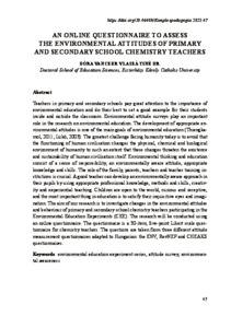 Teachers in primary and secondary schools pay great attention to the importance of environmental education and do their best to set a good example for their students inside and outside the classroom. Environmental attitude surveys play an important role in the research on environmental education. The development of appropriate environmental attitudes is one of the main goals of environmental education (Thiengkamol, 2011; Lükő, 2003). The greatest challenge facing humanity today is to avoid that the functioning of human civilisation changes the physical, chemical and biological environment of humanity to such an extent that these changes threaten the existence and sustainability of human civilisation itself. Environmental thinking and education consist of a sense of responsibility, an environmentally aware attitude, appropriate knowledge and skills. The role of the family, parents, teachers and teacher training in stitutions is crucial. A good teacher can develop an environmentally aware approach in their pupils by using appropriate professional knowledge, methods and skills, creativ ity and experiential teaching. Children are open to the world, curious and receptive, and the most important thing in education is to satisfy their inquisitive eyes and imagination. The aim of our research is to investigate changes in the environmental attitudes and behaviour of primary and secondary school chemistry teachers participating in the Environmental Education Experiments (CEE). The research will be conducted using an online questionnaire. The questionnaire is a 30-item, five-point Likert scale questionnaire for chemistry teachers. The questions are taken from three different attitude measurement questionnaires adapted to Hungarian: the ENV, RevNEP and CHEAKS questionnaires.