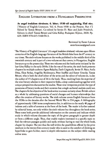 Láncos, Eszter (2024) English Literature from a Hungarian Perspective. EGER JOURNAL OF ENGLISH STUDIES, 23. pp. 91-97. ISSN 1786-5638 (print); 2060-9159 (online)
