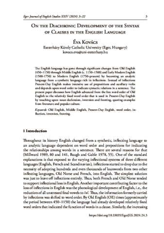 Kovács, Éva (2024) On the Diachronic Development of the Syntax of Clauses in the English Language. EGER JOURNAL OF ENGLISH STUDIES, 24. pp. 3-22. ISSN 1786-5638 (print); 2060-9159 (online)