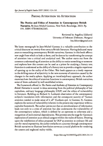 Likhovid, Angelina (2024) Paying Attention to Attention. EGER JOURNAL OF ENGLISH STUDIES (24). pp. 113-116. ISSN 1786-5638 (print); 2060-9159 (online)