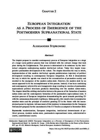 Stępkowski, Aleksander (2025) European Integration as a Process of Emergence of the Postmodern Supranational State. In: Federalism as the Future of the Diverse EU? Studies of the Central European Professors’ Network . Central European Academic Publishing, Miskolc - Budapest, pp. 45-82.