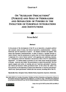 In the process of the development of the EU as an innovative, sui generis political and economic union of states, the forms of preventive constitutionalism – namely, federalism and the separation of powers – are shaped, modified and applied. This means that European constitutionalism, in order to nurture a “prudent attitude towards citizens”, must be understood as a policy that will follow Madison’s path and “compensate for a lack of better motives” with opposing and conflicting interests. As a consequence, both the theoretical and practical sides of the EU constitutional framework – if it indeed aspires to become an ever closer union among the peoples of Europe – must not only enable “the government to control the governed”, but also equally support and realise all existing and new “auxiliary precaution” measures, and checks and balances within government itself. In this article the author will focus precisely on the separation of powers and federalism as “auxiliary precautions” which every “good government” should take into account, including that of the EU.