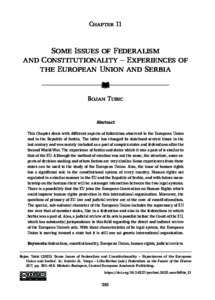 This Chapter deals with different aspects of federalism observed in the European Union and in the Republic of Serbia. The latter has changed its statehood several times in the last century and was mainly included as a part of complex states and federations after the Second World War. The experience of Serbia and states which it was a part of is similar to that of the EU. Although the method of creation was not the same, the structure, some aspects of decision-making and others factors are very similar. Some experiences from these states can be used in the study of the European Union. Also, the issue of human rights has a significant role in the constitutional system of every country. Human rights are regulated in a similar manner in the EU and the Republic of Serbia, and with future membership on the horizon there will be a stronger interaction between the two legal systems. There is a possibility that the EU joins the European Convention on Human Rights which could improve human rights protection in this international organisation. Moreover, the questions of primacy of EU law and judicial review are at the core of constitutionalism. The special, sub-national character of the European Union includes the supremacy of EU law over that of member states, like in a federation and also in the federations in which Serbia was a part of. Also, a judicial review of its acts is possible before the Court of the EU, which has substantial jurisprudence in this field regarding the direct and indirect review of the European Union’s acts. With these characteristics of its legal system, the European Union is moving toward a state but it is still one sui generis international organisation.
