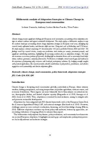 Durmishi, Lediane and Paredes, Anthony Cristian Medina and Farkas, Tibor (2025) Bibliometric Analysis of Adaptation Strategies to Climate Change in European Rural Communities. STUDIA MUNDI - ECONOMICA, 12 (2). pp. 20-34. ISSN 2415-9395