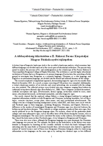 Váradi, Krisztián and Parapatics, Andrea (2025) A többnyelvűség tükröződése a II. Rákóczi Ferenc Kárpátaljai Magyar Főiskola nyelvi tájképében. ALKALMAZOTT NYELVTUDOMÁNY, XXV (1). pp. 1-23. ISSN 1587-1061