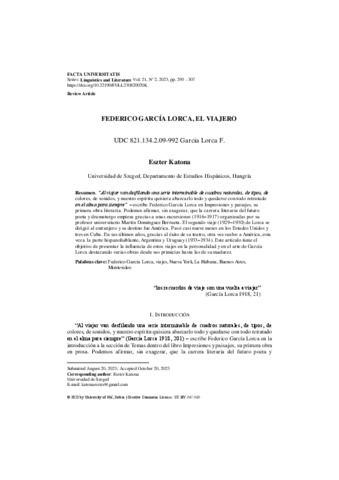 Katona, Eszter (2023) Federico García Lorca, el viajero. FACTA UNIVERSITATIS SERIES: LINGUISTICS AND LITERATURE, 21 (2). pp. 295-307. ISSN 0354-4702
