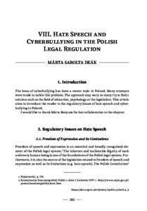 Deák, Márta Sarolta (2025) Hate Speech and Cyberbullying in the Polish Legal Regulation. In: Cyberbullying, Hate crime and related issues : From a comparative perspective. Studies of the Ferenc Mádl Institute, 4 (4). Ferenc Mádl Institute of Comparative Law, Budapest, pp. 203-226. ISBN 978-615-6356-49-9 (print) 978-615-6356-50-5 (online)