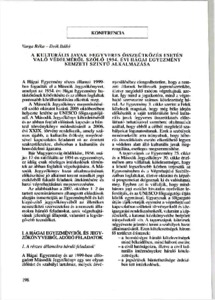 A Hágai Egyezmény részes államai 1999- ben fogadták el a Második Jegyzőkönyvet, amelyet az 1954. évi Hágai Egyezmény ha táskörének kibővítésére és az abban foglaltak pontosabb körülhatárolására alkottak meg. A Második Jegyzőkönyv megerősítésé ről szóló okiratot hazánk 2005 októberében helyezte letétbe az UNESCO főigazgatójá nál. A Második Jegyzőkönyv kihirdetéséről és az abban foglalt előírások kapcsán a bün tető törvénykönyv módosításáról a 2006. évi XXIX. törvény rendelkezik, amely szá mos újabb, a kulturális örökség megőrzé sével kapcsolatos feladatott ró az érintett szakterületekre, elsősorban a kulturális és honvédelmi ágazatra. Bár Magyarország ötödikként, 1956. má jus 17-én ratifikálta az 1954-es egyezményt, ez idáig csak részleges intézkedések történ tek az abban foglaltak végrehajtására. A Má sodik Jegyzőkönyv hazai alkalmazásának előkészítése jó alkalmat teremt mindkét jogi eszközből fakadó feladatok áttekintésére és hazai végrehajtásának megszervezésére. Az alábbiakban a 2007. október 1—2-án tartott szemináriumon elhangzott előadások alapján ismertetjük az Egyezményből és két kiegészítő jegyzőkönyvéből az illetékes nemzetközi szervezetekre és a nemzeti álla mokra háruló feladatokat, azok végrehajtá sának jelenlegi állapotát, valamint a legsür gősebb teendőket.