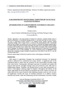A mezőgazdaság az emberi táplálék egyetlen forrása. Jelenleg azonban úgy tűnik, hogy a kereslet meghaladja a hagyományos gazdálkodási gyakorlat korlátait, mivel ez utóbbiak gyakran véges erőforrásokra támaszkodnak. Emiatt a mezőgazdasági kutatás fókusza egy másik megközelítés, nevezetesen a fenntartható gazdálkodás felé tolódik el, amely a remények szerint megoldást kínál a fent említett kérdésre. Egy ilyen rendszertől jelentős hozam és kiemelkedő ellenálló képesség várható el, hogy elviselje és enyhítse az éghajlatváltozás negatív hatásait, és biztosítsa az emberi jólétet. E tanulmány célja, hogy megvizsgálja ezeket a lehetőségeket, a Kárpát-medence éghajlatára összpontosítva. A jelenlegi trendek elemzése után részletesebb tárgyalásra kerül az ökológiai gazdálkodás és annak kihívásai. Az agrárerdészet az e kihívásokra való válasz keretrendszereként kerül ismertetésre. Ennek eredményeként olyan kapcsolódási pontok körvonalazódnak, amelyek azt jelzik, hogy az ökológiai gazdálkodás és az agrárerdészet ötvözése valóban a biztonságos és fenntartható mezőgazdaság alapja lehet. | Agriculture is the only provider of human food. However, currently demand seems to exceed the limitations of conventional farming practices, as the latter often rely on scarce resources. The focus of agricultural research appears to be shifting towards another approach, namely sustainable farming, which is hoped to pose a solution for the aforementioned issue. Considerable yield and farm resilience are expected from such a practice to withstand and mitigate negative effects of climate change and provide for human well-being. This paper aims to investigate such possibilities focusing on the Carpathian basin’s climate. First, current trends are analyzed, then ecological farming and its challenges are explained in further detail. Finally, agroforestry is introduced as an approach and framework to react to these challenges. As a result, connection points are highlighted which indicate that combining ecological farming with agroforestry could indeed be the basis of a safe and sustainable agriculture.