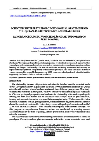 Bashilov, Jalal (2025) Scientific interpretation of geological statements in the Quran: plate tectonics and stabilizers = A Korán geológiai vonatkozásainak tudományos értelmezése. OPUSCULA THEOLOGICA ET SCIENTIFICA, 3 (1). pp. 13-36. ISSN 2939-8398