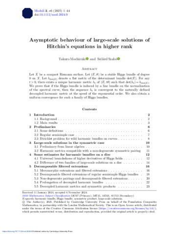 Mochizuki, Takuro and Szabó, Szilárd (2025) Asymptotic behaviour of large-scale solutions of Hitchin’s equations in higher rank. Moduli, 2. ISSN 2949-7647