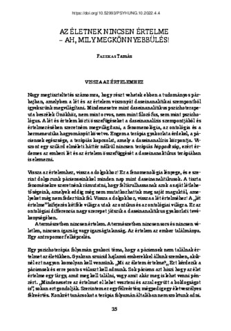 Fazekas, Tamás (2022) Az életnek nincsen értelme – ah, mily megkönnyebbülés! PSYCHOLOGIA HUNGARICA CAROLIENSIS, 10 (4). pp. 35-42. ISSN 2064-2504