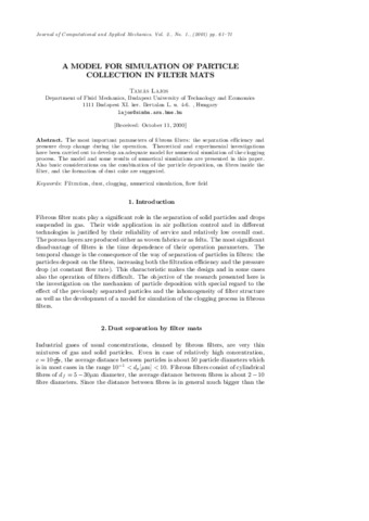 Lajos, Tamás (2001) A model for simulation of particle collection in filter mats. JOURNAL OF COMPUTATIONAL AND APPLIED MECHANICS, 2 (1). pp. 61-71. ISSN 1586-2070
