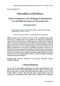 This text, aiming to contribute to the reflection of the main challenges faced by today's Societies, seeks, in essence, to draw attention to the importance of deepening the relations between Administrative Law and Public Governance, reflecting, for this purpose, on a framework of tension between a Vulnerable Society and the need for its resilient transformation, associated with disruptive phenomena such as the pandemic, globalisation and the digital transition. In this sense, the exercise that we propose here, necessarily of an introductory nature, involves, at first, an approximation to the concept of "vulnerability", seeking to direct it to the legal level, and in particular seeking to cut it in the spectrum of Administrative Law, so that, at a subsequent moment, it becomes possible to point out the need for greater responsiveness – and, so too, "resilience" – on the part of public authorities, in an appeal to a dynamic but complex intersection between public policies and instruments of democratic governance and legal regulation, based on a matrix that privileges the dignity of the human person and fundamental constitutional values.