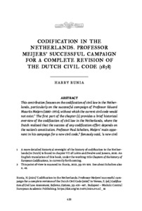Runia, Harry (2024) Codification in the Netherlands : Professor Meijers’ successful cam-paign for a complete revision of the Dutch Civil Code (1838). In: Codification of Civil Law: Assessment, Reforms, Options. Legal Heritage . Central European Academic Publishing, Miskolc–Budapest, pp. 439-467. ISBN 978-615-6474-72-8 ISBN (epub) 978-615-6474-73-5 ISBN (pdf) 978-615-6474-74-2