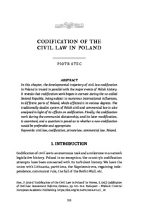 In this chapter, the developmental trajectory of civil law codification in Poland is traced in parallel with the major events of Polish history. It reveals that codification work began in earnest during the so-called Second Republic, being subject to numerous international influences, in different parts of Poland, which affected it in various degrees. The traditionally dualist system of Polish civil and commercial law is also analysed in light of its effects on codification. Finally, the codification work during the communist dictatorship, and its later modification, is examined, and a question is posed as to whether a new codification would be preferable and appropriate.