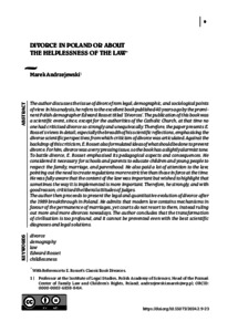 The author discusses the issue of divorce from legal, demographic, and sociological points of view. In his analysis, he refers to the excellent book published 40 years ago by the prominent Polish demographer Edward Rosset titled ‘Divorces’. The publication of this book was a scientific event, since, except for the authorities of the Catholic Church, at that time no one had criticised divorce so strongly and unequivocally. Therefore, the paper presents E. Rosset’s views in detail, especially the breadth of his scientific reflections, emphasising the diverse scientific perspectives from which criticism of divorce was articulated. Against the backdrop of this criticism, E. Rosset also formulated ideas of what should be done to prevent divorce. For him, divorce was a very pressing issue, so the book has a slightly alarmist tone. To battle divorce, E. Rosset emphasised its pedagogical aspects and consequences. He considered it necessary for schools and parents to educate children and young people to respect the family, marriage, and parenthood. He also paid a lot of attention to the law, pointing out the need to create regulations more restrictive than those in force at the time. He was fully aware that the content of the law was important but wished to highlight that sometimes the way it is implemented is more important. Therefore, he strongly, and with good reason, criticised the liberal attitudes of judges.The author then proceeds to present the legal and quantitative evolution of divorce after the 1989 breakthrough in Poland. He admits that modern law contains mechanisms in favour of the permanence of marriages, yet courts do not resort to them, instead ruling out more and more divorces nowadays. The author concludes that the transformation of civilisation is too profound, and it cannot be prevented even with the best scientific diagnoses and legal solutions.