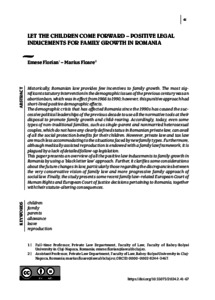 Florian, Emese and Floare, Marius (2024) Let the Children Come Forward – Positive Legal Inducements for Family Growth in Romania. LAW IDENTITY AND VALUES, 4 (2). pp. 41-67. ISSN 2786-2542