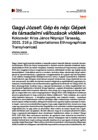 Kőszegi, Gábor (2024) Gép és nép: Gépek és társadalmi változások vidéken : Kolozsvár: Kriza János Néprajzi Társaság, 2021. 216 p. (Dissertationes Ethnographicæ Transylvanicæ). TABULA (2014-), 25 (1-2). pp. 115-119. ISSN 1419-3310