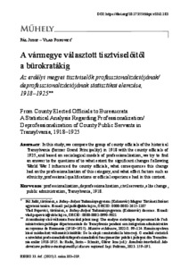 A tanulmányban összehasonlítjuk a történelmi Erdély (egykori Nagyfejedelemség) 1918-as vármegyei tisztviselők csoportját az 1925-ös megyei tisztviselőkéivel, és a professzionalizáció szociológiai modelljeiből kiindulva arra próbálunk választ találni, hogy az I. világháborút követő jelentős változások milyen mértékben befolyásolták a megyei tisztviselői kart, ez a változás milyen következményekkel járt e kategória professzionalizációjára, valamint ebben az összefüggésben milyen hatást gyakoroltak olyan tényezők, mint az etnikai hovatartozás, a szakképesítés vagy a hivatali tapasztalat.