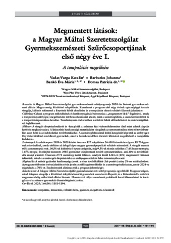 Bevezetés: A Magyar Máltai Szeretetszolgálat gyermekszemészeti szűrőprogramja 2020 óta biztosít gyermekszemészeti ellátást Magyarország felzárkózó településein. Kutatásunk a program első négy évének egészségügyi hatásait vizsgálja, különös tekintettel a fénytörési hibák eloszlására és a tompalátást okozó refraktív faktorok jelenlétére. Célkitűzés: Célunk a program működésének és hatékonyságának bemutatása a „megmentett látás” fogalmával, amely a tompalátás (amblyopia) megelőzésére tett beavatkozásokat jelenti, mint a szemüvegfelírás, a szemészeti műtétek és a tompalátás tapaszolásos kezelése. Tanulmányunk első részében a refraktív hibák előfordulásával és azok korrigálásával foglalkozunk. Módszer: A vizsgált dioptriaeloszlások és -kategóriák a szűrésen kézi videorefraktométer által mért adatok alapján kerültek meghatározásra. A látásszűrés hatékonysági mutatójaként vizsgáltuk az optometristához történő továbbutalást, azon belül is az indokolatlan továbbutalásokat. A szemüvegfelírásoknál külön kategóriát képeztek az amblyogen fénytörési hibákkal rendelkező gyermekek, mivel a korrekció időben történő felírásával megelőzhető a tompalátás kialakulása. Eredmények: A szűrőcsoport 2020 és 2023 között összesen 127 településen 26 410 látásszűrést végzett 19 724 gyermek részvételével, amely elsőként ad átfogó képet magyar gyermekpopuláció refraktív státuszáról. A vizsgált szemek 60%-a emmetropiás volt, 30,5%-uk különböző típusú astigmiát, míg 9,5%-uk tisztán szferikus (7,4% hypermetropia; 1,87% myopia) töréshibát mutatott. 3985 gyermeket irányítottunk tovább optometristához, ami 20%-os továbbküldési arányt jelentett. Összesen 2773 szemüveg került felírásra, amelyek közül 1224-et (44%) megmentett látásnak tekintünk, mivel e szemüvegek dioptriaértéke az amblyogen refraktív hiba tartományába esett. Megbeszélés: A szűrési gyakorlat hatékonysága javult, a téves továbbküldési (fals pozitív) arány 2%-on stabilizálódott. A program több mint ötéves jelenléte révén javult a szülői együttműködés és a szemüvegviselési arány, amely 2024-re meghaladta a 70%-ot. Eredményeink alátámasztják a program jelentőségét. Következtetés: A Magyar Máltai Szeretetszolgálat gyermekszemészeti szűrőprogramja egyedülálló Magyarországon, mivel átfogóan vizsgálja a felzárkózó településeken élő gyermekek szemészeti állapotát, és a látásszűréstől a műtétek megszervezéséig széles körű ellátást biztosít. Hosszú távú célja a szemészeti problémák korai felismerésével és korrigálásával az érintett gyermekek életminőségének javítása. Orv Hetil. 2025; 166(30): 1181–1194. | Introduction: Since 2020, the pediatric ophthalmology screening program of the Hungarian Charity Service of the Order of Malta has been providing ophthalmic care for children in disadvantaged settlements across Hungary. This study evaluates the public health impact of the program during its first four years, with a particular focus on the dis- tribution of refractive errors and the presence of amblyogenic refractive factors. Objective: The aim of our study is to assess the operation and effectiveness of the program through the concept of “vision saved”, which encompasses interventions aimed at preventing amblyopia – such as prescribing corrective glasses, performing ophthalmic surgeries, and administering occlusion therapy. In the first part of our study, we focus on the prevalence of refractive errors and their correction. Method: Refractive error categories and distributions were determined based on data obtained using handheld video refractometers during screenings. As an indicator of screening efficiency, we analyzed referrals to optometrists, plac- ing special emphasis on unnecessary (false alarm) referrals. Children with amblyogenic refractive errors were catego- rized separately in the prescription data, as timely correction can prevent the development of amblyopia in these cases. Results: Between 2020 and 2023, the screening team performed 26,410 vision screenings in 127 settlements, reach- ing 19,724 children. This dataset provides the first comprehensive overview of the refractive status of the Hungarian paediatric population. Among the eyes examined, 60% were emmetropic, 30.5% exhibited various forms of astigma- tism, and 9.5% had pure spherical refractive errors (7.4% hyperopia; 1.87% myopia). In total, 3,985 children were referred to optometrists, corresponding to a 20% referral rate. Altogether, 2,773 pairs of spectacles were prescribed, of which 1,224 (44%) fell within the amblyogenic refractive error range and are therefore considered cases of vision saved. Discussion: The effectiveness of the screening practice improved over time, with the false alarm referral rate stabilising at 2%. The program’s sustained presence over five years has contributed to increased parental engagement and a rise in spectacle wear, which exceeded 70% by 2024. These results highlight the program’s significance. Conclusion: The pediatric ophthalmology screening program of the Hungarian Charity Service of the Order of Malta is unique in Hungary, as it provides comprehensive ophthalmic evaluation and care for disadvantaged children – from vision screening to organizing surgical interventions. Its long-term objective is to improve the quality of life of affected children through the early detection and correction of ophthalmic disorders.