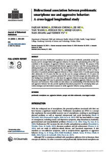 Rong, Fajuan and Cheng, Junhan and Hu, Jie and Wang, Yan and Xu, Zixuan and Guan, Meiqi and Zhang, Nan and Yu, Yizhen (2025) Bidirectional association between problematic smartphone use and aggressive behavior: A cross-lagged longitudinal study. JOURNAL OF BEHAVIORAL ADDICTIONS, 14 (1). pp. 394-404. ISSN 2062-5871