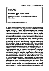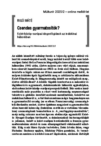 Rigó, Máté (2025) Csendes gyarmatosítók? : Kelet-közép-európai idegenlégiósok az indokínai háborúban. MÚLTUNK - POLITIKATÖRTÉNETI FOLYÓIRAT, 70 (2). OM1-OM29. ISSN 0864-960X