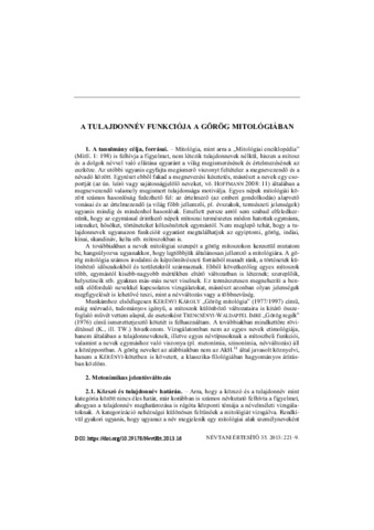 Slíz, Marianna Ilona (2013) A tulajdonnév funkciója a görög mitológiában [The function of names in Greek mythology]. NÉVTANI ÉRTESÍTŐ, 35. pp. 221-229. ISSN 0139-2190 (nyomtatott); 2064-7484 (online)
