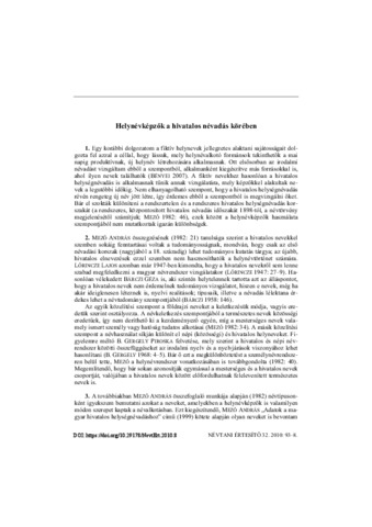 Bényei, Ágnes (2010) Helynévképzők a hivatalos névadás körében = Derivative suffixes producing settlement names in official naming practices. NÉVTANI ÉRTESÍTŐ, 32. pp. 93-98. ISSN 0139-2190