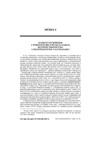Tóth, Valéria (2009) Elmélet és módszer a történeti helynévkutatásban = Theory and method in historical settlement name research with especial regard to the changes of settlement names. NÉVTANI ÉRTESÍTŐ, 31. pp. 175-183. ISSN 0139-2190