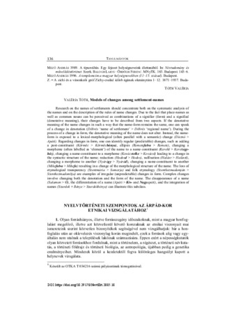 Tamás Gáborné Póczos, Rita (2005) Nyelvtörténeti szempontok az Árpád-kor etnikai vizsgálatához = Examining the ethnic structure of the population in the Age of the Arpads by means of historical linguistics. NÉVTANI ÉRTESÍTŐ, 27. pp. 136-143. ISSN 0139-2190
