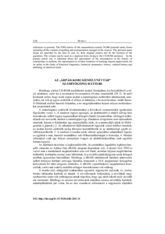 Mayer, Gyula (2005) Az ,,Árpád-kori személynévtár'' számítógépes háttere. NÉVTANI ÉRTESÍTŐ, 27. pp. 270-273. ISSN 0139-2190