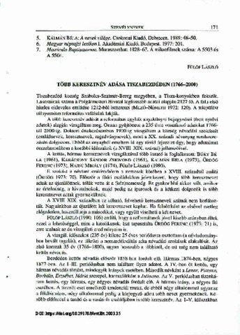Koi, Balázs (2003) Több keresztnév adása Tiszabezdéden (1766-2000). NÉVTANI ÉRTESÍTŐ, 25. pp. 171-177. ISSN 0139-2190