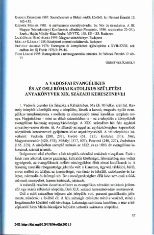 Varga Józsefné Horváth, Mária (2001) A vadosfai evangélikus és az osli római katolikus születési anyakönyvek XIX. századi keresztnevei. NÉVTANI ÉRTESÍTŐ, 23. pp. 37-54. ISSN 0139-2190