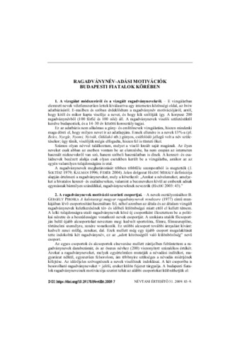 Heltovics, Éva (2009) Ragadványnév-adási motivációk budapesti fiatalok körében = Motivations for giving nicknames among the young in Budapest. NÉVTANI ÉRTESÍTŐ, 31. pp. 83-89. ISSN 0139-2190