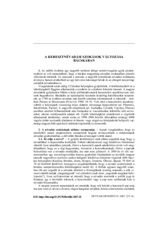 Rajsli, Ilona (2007) A keresztnévadási szokások változása Bácskában. NÉVTANI ÉRTESÍTŐ, 29. pp. 235-241. ISSN 0139-2190