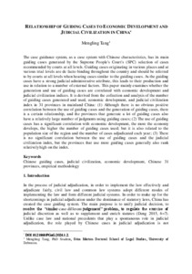 Tang, Mengling (2024) Relationship of guiding cases to economic development and judicial civilization in China. PUBLIC GOODS AND GOVERNANCE, 9 (1). pp. 9-38. ISSN 2732-2882
