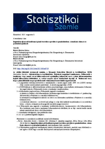 A hiányzó adatok kezelése kiemelt jelentőségű a statisztikai modellezés és az empirikus kutatások pontosságának biztosítása érdekében. Különösen a területi paneladatok esetében kulcsfontosságú a megfelelő imputációs módszerek kiválasztása, mivel a hagyományos törlési eljárások jelentős adatvesztésselés torzítással járhatnak. Tanulmányunkban egyváltozós paneladatok hiányzó értékeinek imputációjátvizsgáljuk öt, különböző karakterisztikákkal rendelkező ismérv esetében, szimulációs kísérlet segítségével tesztelve tizenegy különböző, széles körben alkalmazott eljárást. Eredményeink alapján az adatokpanel jellegét figyelembe vevő, peremeloszlásra építő módszerek általánosan jobb teljesítményt nyújtanak, függetlenül az adatok jellegétől. Következésképpen alkalmazásukat különösen ajánljuk a hiányzóterületi adatok imputációjára, hiszen nemcsak a panelelemzések, hanem sok esetben a keresztmetszetiadatokra építő kutatások esetén is elérhető panelmegfigyelés a területi ismérvek tekintetében, amelykarakterisztika figyelembevétele jelentősen javíthatja az imputálás és következésképpen a statisztikaieljárások megbízhatóságát. Kutatásunk rávilágít továbbá arra is, hogy az aggregált értékek ismeretenem feltétlenül javítja az imputálás pontosságát, valamint bármilyen csoportosításon alapuló technikahatékonysága erősen függ a csoportképzés relevanciájától. | Handling missing data is crucial for ensuring the accuracy of statistical modeling and empirical research. The selection of appropriate imputation methods is particularly important for spatial panel data, as traditional deletion techniques may lead to significant data loss and bias. In our study, we examine the imputation of missing values in univariate panel data across five variables with different characteristics, testing eleven widely used methods through a simulation experiment. Our results indicate that methods based on marginal distributions, which account for the panel nature of the data, consistently outperform other approaches, regardless of data characteristics. Consequently, we strongly recommend their application for imputing missing spatial data, as panel observations are often available even in cross-sectional studies involving spatial indicators. Considering these characteristics can significantly improve imputation accuracy and, consequently, the reliability of statistical analyses. Furthermore, our research highlights that the knowledge of aggregated values does not necessarily enhance imputation accuracy, and the effectiveness of any grouping-based technique heavily depends on the relevance of the grouping criteria.