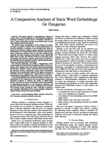 Gedeon, Máté (2025) A Comparative Analysis of Static Word Embeddings for Hungarian. INFOCOMMUNICATIONS JOURNAL, 17 (2). pp. 28-34. ISSN 2061-2079