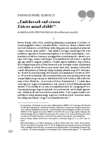 Radnai, Dániel Szabolcs (2024) "Emlékezzék rád vissza Eötvös minél előbb!”: A nekrológíró Eötvös Károly és a Magyar alakok. TISZATÁJ: IRODALMI MŰVÉSZETI ÉS TÁRSADALMI FOLYÓIRAT, 2024 (4). pp. 60-74. ISSN 0133-1167