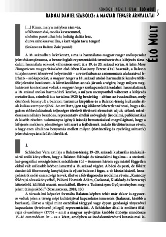 Radnai, Dániel Szabolcs (2024) A magyar tenger árnyalatai. SOMOGY : IRODALOM MŰVÉSZET KULTÚRA, 52 (1). pp. 5-21. ISSN 0133-0144