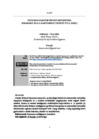Mező, Ferenc (2025) Pszichológiatörténeti metszetek: Spearman és a g-faktorhoz vezető út (2. rész). OXIPO : INTERDISZCIPLINÁRIS E-FOLYÓIRAT, 7 (2). pp. 9-22. ISSN 2676-8771