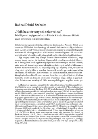 Radnai, Dániel Szabolcs (2025) „Hejh ha a törvénynek szive volna!”: Felvilágosult jogi gondolkodás Eötvös Károly Nemzetes Böthök uram szerencséje című beszélyében. VERSO: IRODALOMTÖRTÉNETI FOLYÓIRAT, 8 (1). pp. 61-73. ISSN 2630-8479
