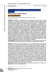 Napjainkban a játékvezetők olyan helyzeteknek vannak kitéve, amelyek stresszel járnak. Több tanulmány felveti, hogy különböző külső hatások magas stresszt okozhatnak a játékvezetők tevékenysége során. Kutatásunkban azt vizsgáljuk, hogy a különböző bajnoki osztályokhoz rendelt játékvezetői keretek, illetve a nemek között milyen mértékben van jelen a stressz, és ez hogyan befolyásolhatja a játékvezetők mérkőzéseken nyújtott teljesítményét. Feltárásra kerül a legnagyobb stresszt kiváltó hatások megismerése, a stressz kiváltásának okai férfi és női játékvezetők körében, a női és férfi játékvezetők stresszfaktorainak dimenziói, a stressz kiváltásának okai játékvezetői keretek szerint, és a játékvezetői keretek stresszfaktorainak dimenziói is. Eredményeinkkel szeretnénk felhívni a figyelmet arra, hogy a játékvezetőket – képzésük során fel kell készíteni az őket érő stresszhatásokra. A kutatás kvalitatív, a Google Forms kérdőív egy 11 kérdéses anamnézis vizsgálatból, és a Basketball Official’s Sources of Stress Inventory (BOSSI), a játékvezetők stresszforrásait vizsgáló, 15 kérdést tartalmazó kérdőívből állt. A Játékvezetői Bizottság segítségével a kérdőívet 123 fő töltötte ki. A statisztikai elemzés a Statistica for Windows programmal készült, ANOVA próbával. Az eredmények megmutatták, hogy a legnagyobb stresszt a téves ítélet meghozatala okozta a játékvezetők körében, ez szignifikánsan nagyobb volt a női bíróknál, de az agresszív és a sportszerűtlen viselkedés is nagy stresszt váltott ki a játékvezetőknél. A stresszfaktorok dimenzióinak elemzése során a nők esetében szignifikánsan nagyobb a stressz mértéke a férfiakénál. | Nowadays, referees are exposed to a lot of stressful situations. Several studies have shown that various external influences can cause enormous stress to referees. In our research we investigated the extent to which stress is present in different referee categories, between genders and how this may affect referees’ performance in matches. We also explored the major stressors, the causes of stress among male and female referees, the dimensions of stressors for male and female referees, the causes of stress by categories, and the dimensions of stressors in referee categories. Thus, we aimed to show a comprehensive picture of the stress to which referees are exposed and the importance of stress management during their training and activities. The research was qualitative with the Google Forms questionnaire consisting of an 11-question anamnesis survey and the Basketball Official’s Sources of Stress Inventory (BOSSI), a 15-question questionnaire that assesses the sources of stress for referees. With the help of the Referees’ Committee, 123 people filled in the questionnaire. Statistical analysis was performed using Statistica for Windows program with ANOVA test. The results showed that the biggest stress among referees was caused by the fear of making wrong decisions, which was significantly higher in case of female referees, but aggressive and unsportsmanlike conduct also caused great stress among referees. The analysis of the dimensions of stress factors clearly showed that women were significantly more stressed than men.