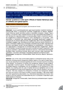 Korunk sporttársadalmának egyik legnehezebben kezelhető kérdése az interszexuális, illetve a transzgender sportolók megjelenése az elitsport világában. Caster Semenya esetét bemutatva azokra a kérdésekre keressük a választ, hogy a jövőben a női sportra milyen hatással lehetnek az ilyen sportolókkal kapcsolatban hozott döntések és megnyilvánulások. Az interszexualitás mellett a transznemű sportolók megjelenése is hatalmas kihívásokhoz vezet, elsődlegesen a női sportban. Jelen elemzésben a kérdéskört jogi, pszichológiai, szociológiai aspektusból végigjárva, a transzgender és interszexuális sportolók megjelenését, illetve azok elfogadásának lehetőségeit vizsgáljuk meg. Kiindulási pontnak Caster Semenya esetét emelnénk ki. Az ebben a kérdésben kialakult jogi, szociológiai, társadalmi irányvonalak meghatározóak lehetnek a sportágban és akár más sportágakban is a későbbiekben. A tanulmány során végigvesszük a transzgender és interszexuális sportolók megjelenését, valamint konkrét példákon keresztül kívánjuk bemutatni a probléma forrásait. Megnézzük, hogy az egyes esetekben a jelentősebb döntéshozó szervek; a Nemzetközi Szövetségek, Bíróságok milyen eredményre jutottak, illetve azok mennyire voltak relevánsak, elfogadhatóak. A tanulmány lehetséges megoldási javaslatokat is próbál bemutatni. | One of the most controversial subjects in professional sports today is the presence of intersexual and transgender athletes. Based on the case of Caster Semenya, we are searching for answers regarding the future of women’s sports concerning these athletes. The presence of intersex and transgender athletes causes challenges, especially in women’s sports. This article focuses on the legal, psychological, and sociological aspects of participation and the possibilities for the acceptance of these athletes. As a starting point the case of Caster Semenya is highlighted and how the legal, sociological and social trends regarding this case could be decisive in the future of sports. This study analyses the emergence of intersex and transgender athletes and show the source of the issue by giving concrete examples. It also gives insight into which agreements policymakers, e.g., international associations and courts, have settled on and how relevant and reasonable they are. In conclusion, it also likes to give viable solutions to this issue.