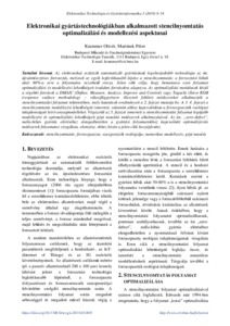 Az elektronikai eszközök automatizált gyártásának legelterjedtebb technológia az ún. újraömlesztéses forrasztás, melynek az egyik legkritikusabb lépése a stencilnyomtatás; a forrasztási hibák akár 60%-a erre a folyamatra vezethető vissza. Jelen cikk célja, hogy bemutassa ezen folyamat optimalizálási és modellezési lehetőségeit irodalmi forrásokra alapozva. Az optimalizálási metódusok közül a régebbi források a DMAIC (Define, Measure, Analyze, Improve and Control) vagy Taguchi illetve RSM (response surface methodology – válaszfüggvényre illesztett felület) módszereket alkalmazták a stencilnyomtatási folyamat tekintetében, mely kutatások eredményeit a 2. fejezet mutatja be. A 3. 4. fejezet a stencilnyomtatás modellezési lehetőségeit ismerteti, valamint ahhoz kapcsolódóan a forraszpaszták reológiai tulajdonságait leíró anyagmodelleket. Végezetül az 5. fejezet ismerteti a stencilnyomtatási folyamat legújabb modellezési és optimalizálási lehetőségeit gépi tanulási módszerek alkalmazásával. Az ún. „zero-defect”, nulla-hibás gyártás eléréséhez elengedhetetlen a gyártási folyamatokhoz kapcsolódó optimalizációs módszerek folyamatos vizsgálata, elemzése, ehhez kíván a jelen cikk hozzájárulni.