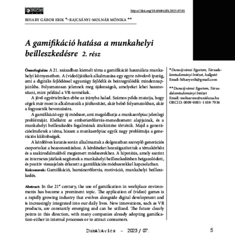 Bihary, Gábor Erik and Rajcsányi-Molnár, Mónika (2025) A gamifikáció hatása a munkahelyi beilleszkedésre 2. rész. DUNAKAVICS, 13 (7). pp. 5-16. ISSN 2064-5007