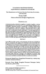 A különböző korokban, különböző országokban és társadalmi rétegekben a vasárnap megünneplésének más és más szerepe van. A 19. század változásai, különösen az ipari forradalom változtatásra késztette a társadalmakat. A korábban meglévő ünnepi szokások átalakultak. A változásokra egyházi és világi szempontból egyaránt reagáltak. Az előbbiek hitelvi okok miatt, az utóbbiak a munkások védelme miatt tartották sérelmesnek a mindennapra kiterjedő munkavégzést. A vasárnap megszentelésének ügye nemcsak Európában, hanem Amerikában is mozgalommá vált. Hazánkban ezen ügy mellett református részről Balogh Ferenc debreceni professzor áll ki, aki az általa szerkesztett Evangyéliomi Protestáns Lapban (EPL) (1875–1878) rendszeresen tudósított a vasárnappal kapcsolatos külföldi és hazai eseményekről. A jelen dolgozat az említett lap alapján mutatja be a vasárnappal kapcsolatos felekezeti és regionális eltéréseket, és a hetedik nap megszentelésével kapcsolatos sikereket és kudarcokat./Across different periods, countries, and social groups, the observance of Sunday has taken on varying roles. The changes of the nineteenth century–particularly those brought about by the Industrial Revolution–prompted societies to reassess their practices. Traditional customs related to Sunday gradually transformed. Both religious and secular institutions responded to these changes: the former objected to daily labor on doctrinal grounds, while the latter were concerned with protecting workers’ rights. The movement to sanctify Sunday gained momentum not only in Europe but also in America. In Hungary, the Reformed professor Ferenc Balogh of Debrecen became a prominent advocate of the cause. In the Evangyéliomi Protestáns Lap (1875–1878), which he edited, he regularly reported on domestic and international developments concerning Sunday observance. Drawing on this publication, the present study examines denominational and regional differences in attitudes toward Sunday, as well as the successes and failures associated with efforts to sanctify the seventh day.