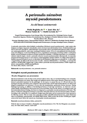 Pósfai, Boglárka and Jenei, Alex and Pancsa, Tamás and Kuthi, Levente (2025) A perirenalis zsírszövet myxoid pseudotumora : Az első hazai esetismertetés = Perinephric myxoid pseudotumor of fat : The first Hungarian case presentation. ORVOSI HETILAP, 166 (31). pp. 1224-1229. ISSN 0030-6002