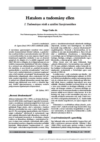 Varga, Csaba (2025) Hatalom a tudomány ellen : I. Tudományos viták a sztálini Szovjetunióban. ORVOSI HETILAP, 166 (31). pp. 1234-1237. ISSN 0030-6002